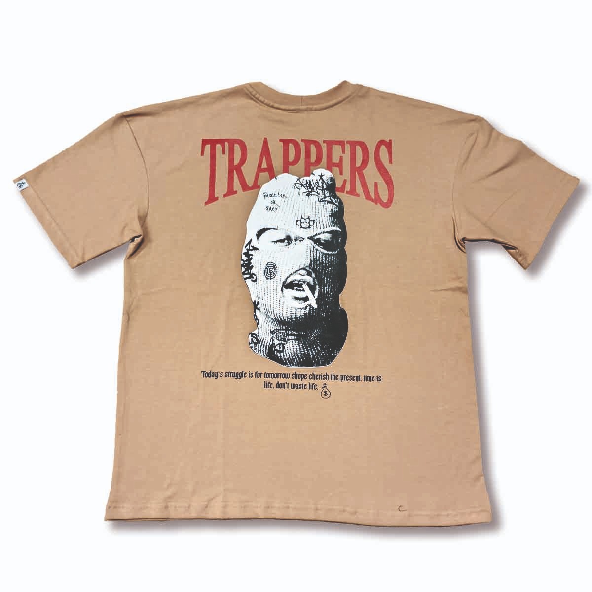 MODELO TRAPERS,FRENTE,COLOR BEIGE PLAYERA OVERSIZE TELA ALGODÓN PEINADO + DE 300GR, APLICACIÓN SERIGRAFIA